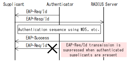 With this method, EAP-Request/Identity does not reach the authenticated terminal, so there is no need to re-authenticate the authenticated terminal.