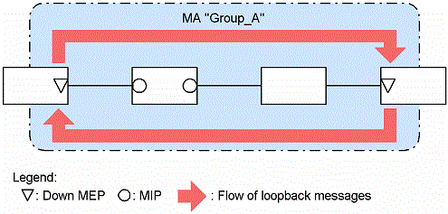 The loopback functionality can be used at the Layer 2 level, and is equivalent to pinging. The loopback function verifies the connectivity between MEPs or between a MEP and a MIP in the same MA.