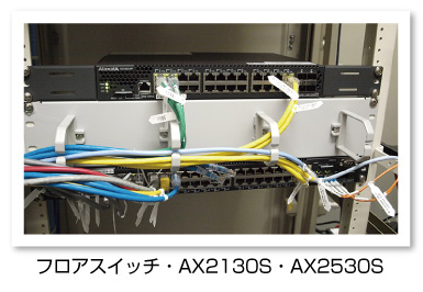 コアスイッチとディストリビューション・スイッチの両方で「AX3660S」を採用。それぞれ2台でスタック構成をとっています。その配下のフロアスイッチには「AX2530 S」と「AX2130S」を採用しました。