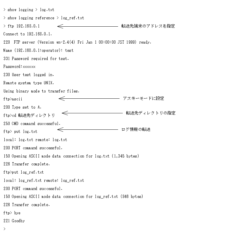 リモート運用端末との間でファイル転送を行う場合はftpコマンドを使用します。