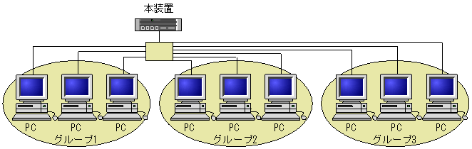 注※3 本装置に直接接続しているグループ数。IPv4マルチキャストグループ数の例を「図3-3 IPv4マルチキャストグループ数の例」に示します。