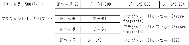 MTUを超えるIPパケットは,IPヘッダを除くデータ部分を8の倍数長でフラグメント化します。