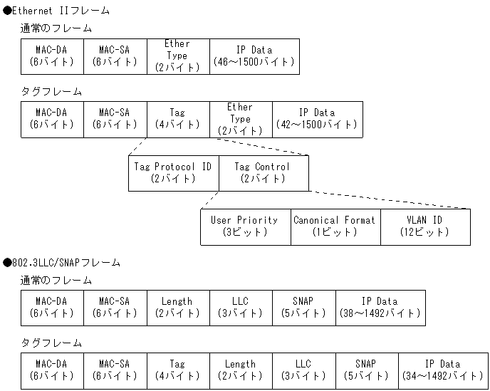 図18-2 VLAN Tag付きフレームのフォーマット