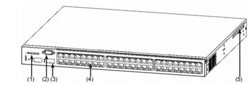 正面パネルのレイアウトを「図1-27 正面パネルレイアウト」に示します。図中の番号は,「表1-15 LEDの表示,スイッチ,コネクタ」の番号に対応しています。