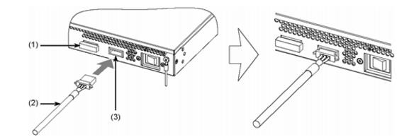 図2-20 ケーブル用コネクタの取り付け(1) ケーブル用コネクタ(2) DC電源コネクタ(3) 電源機構