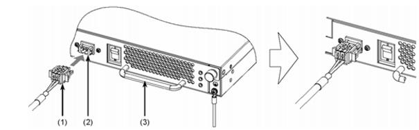 図2-15 ケーブル用コネクタの取り付け(1) ケーブル用コネクタ(2) DC電源コネクタ(3) 電源機構