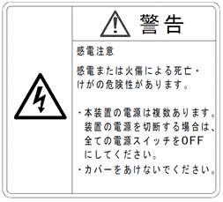 - 装置のカバーをあけないでください。感電の原因となります。装置には以下のラベルを貼り付けています。