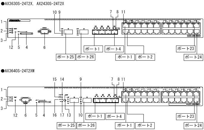 - AX3640S-24TW,AX3640S-24T2XW,AX3640S-48TW,AX3640S-48T2XW,AX3640S-24SW,AX3640S-24S2XW,AX3630S-48TW,AX3630S-48T2XW,AX3630S-24S2XW