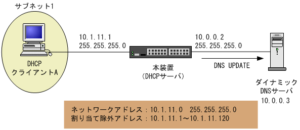 逆引きドメイン11.1.10.in-addr.arpa.に対するゾーン情報を設定し,ダイナミックDNSサーバに10.0.0.3を設定します。