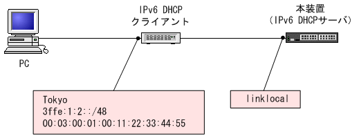 - (config-dhcp)# prefix-delegation 3ffe:1:2::/48 00:03:00:01:00:11:22:33:44:55