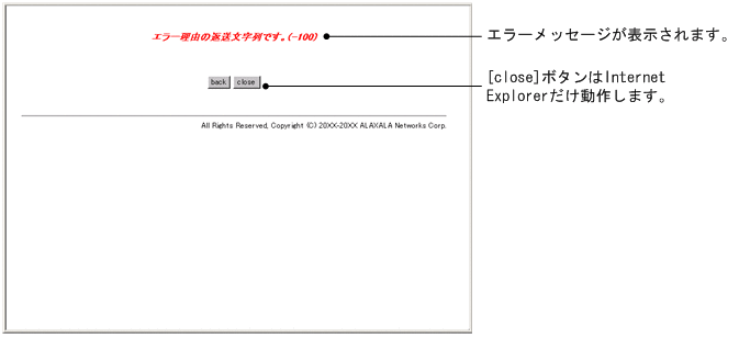 認証が失敗となった場合は,認証エラー画面を表示します。