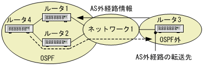OSPFのAS内経路(エリア内経路,またはエリア間経路)を,AS外経路より優先します。