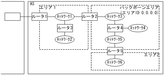 エリアIDが0であるエリアをバックボーンと呼びます。ASが複数のエリアに分割されている場合,バックボーンには特別な役割があります。ASを複数のエリアに分割する場合は,エリアのどれか一つをバックボーンエリアとして設定する必要があります。ただし,一つのASにバックボーンを二つ以上ある構成にしないでください。そのような構成の場合,情報がそれぞれのバックボーンに分散されるため,到達不能である経路が発生したり,最適な経路を選択しなかったりすることがあります。