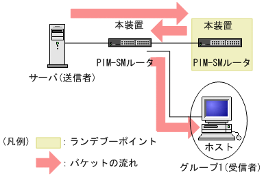 - 送信者とランデブーポイントの間に受信者が存在する構成