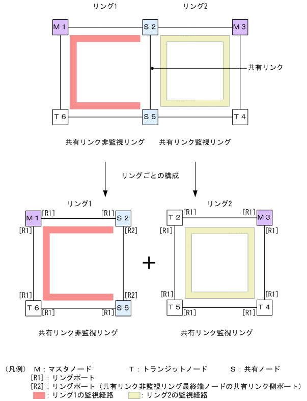 図29-3 共有リンクありマルチリング構成(基本構成)