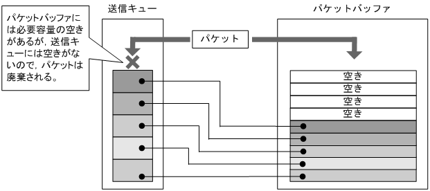 図30-10 送信キューに空きがないためパケットが廃棄される場合