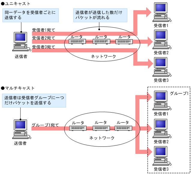 プロトコル アドレス範囲 IPv4 224.0.0.0〜239.255.255.255 IPv6 上位8ビットがff(16進数)となるIPv6アドレス