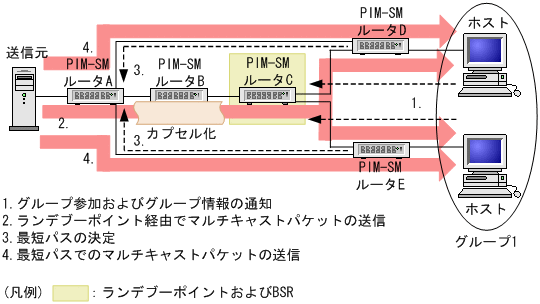 選出項目 選出条件 優先順位 RFC2362 RFC4601 ランデブーポイントが管理するグループアドレス 最長一致 − 1 ランデブーポイントの優先度※1 最小値 1 2 ランデブーポイントのハッシュ値※2 最大値 2 3 ランデブーポイントのIPアドレス 最大値 3 4 (凡例) −:条件なし