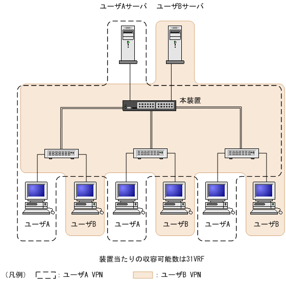 レイヤ2プロトコルを使用しないネットワークでも,VRF機能は使用できます。