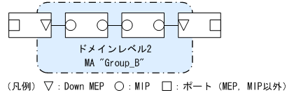 ドメインレベル2を設計する際,ドメインレベル1のMAでMEPに設定しているポートをドメインレベル2のMIPとして設定します。これによって,ドメインレベル2ではドメインレベル1の範囲を認識しながらも,運用上は意識しない状態で管理できます。