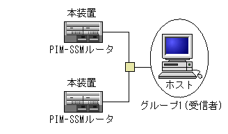 - マルチキャストグループ(受信者)と同一回線上に複数のPIM-SSMルータが動作する構成
