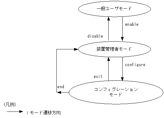 コマンド入力モード 実行可能なコマンド プロンプト 一般ユーザモード 運用コマンド(configure,adduserコマンドなど,一部のコマンドは装置管理者モードで実行可能です。) > 装置管理者モード 運用コマンド # コンフィグレーションモード※ コンフィグレーションコマンド (config)#