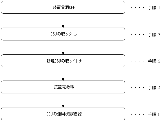 電源OFFの状態で運用系BSUおよび待機系BSUを交換する概略手順を次の図に示します。
