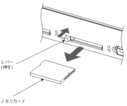 - レバーを矢印の方向へ押してメモリカードを取り出します。