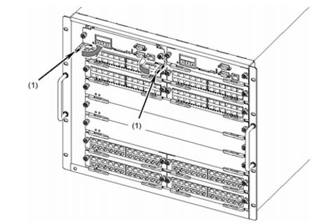 基本制御機構を撤去する場合,ブランクパネルを取り付けてください。ブランクパネルを取り付けずにそのまま使用すると,装置のエアフローが確保できなくなります。エアフローが確保できなくなると,装置内部の温度上昇により,障害発生の原因となります。また,本装置が発生する妨害電波が他の機器へ影響を与えたり,他の機器が発生する妨害電波が本装置に影響を与え,誤動作の原因となることがあります。