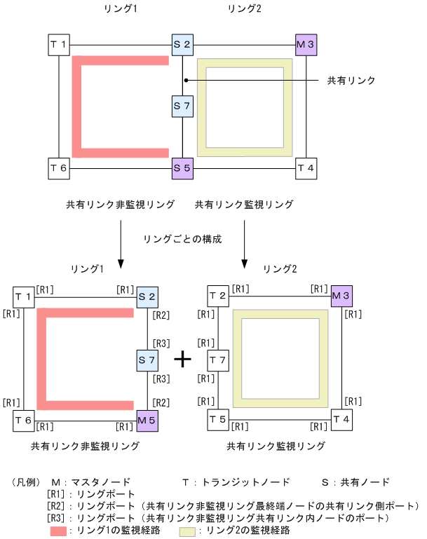 図8-3 共有リンクありマルチリング構成(基本構成)