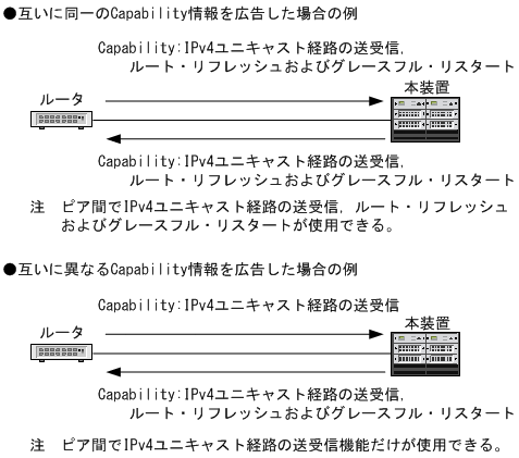 機能名称 OPENメッセージのCapability情報 内容 IPv4ユニキャスト経路の送受信 Capability Code:1