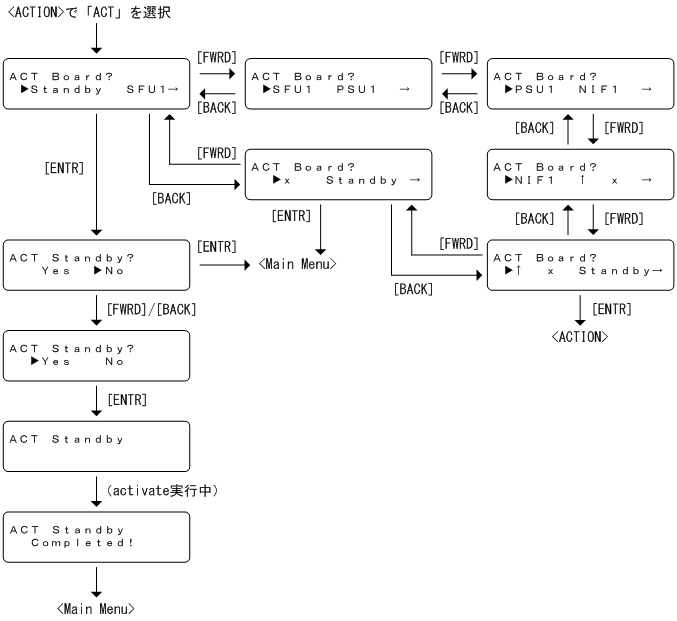 システム操作パネルから「ACT」を選択および実行して,ボードをactive状態にする
