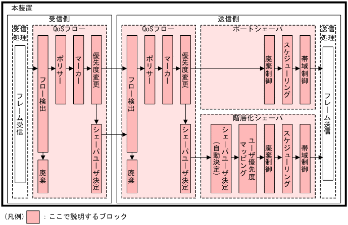 本装置のQoS制御の機能ブロックを次の図に示します。