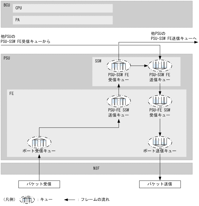 (1) AX8608S,AX8304S,およびAX8308Sの装置内キューとフレームの流れ