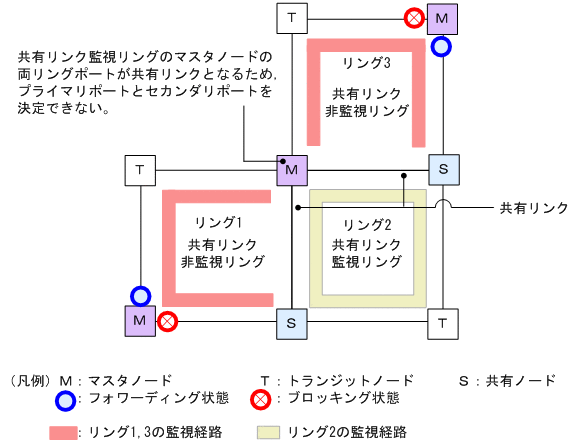 図6-28 マスタノードの両リングポートが共有リンクとなる構成