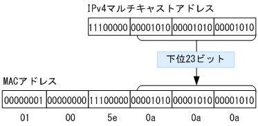 図8‒3 IPv4マルチキャストアドレスとMACアドレスの対応