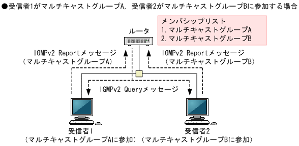 マルチキャストルータは受信者からIGMPv2 Reportメッセージを受信すると,そのグループアドレスをメンバシップリストに追加します。
